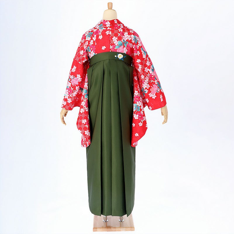 【色柄】鮮やかな赤地にキュートなバラや桜が乙女心をくすぐります。細かいピンクの市松模様も華やかさをプラスして晴れやかな卒業式にはピッタリ!着ているだけでニコニコしちゃうね。