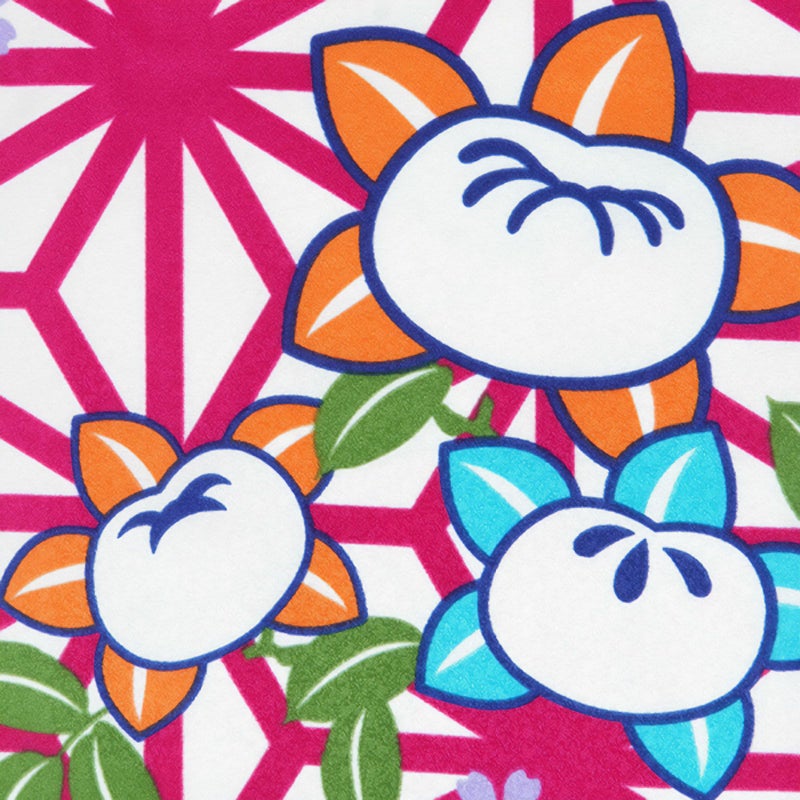【色柄】基本コンセプトは、かわいさいっぱいのレトロモダン。大振りの麻の葉柄と橘を、シンプルな配色でまとめました。アンティークな雰囲気とともに、どこかポップなテイストを感じさせるデザインです。