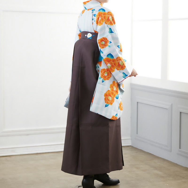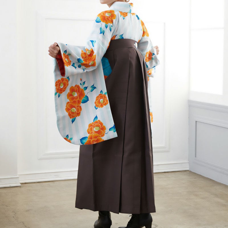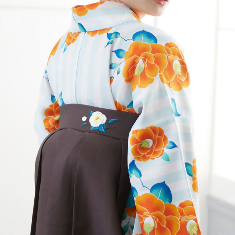 3. 【中古品】二尺袖 単品「白×緑 縦縞 椿」貸衣装処分 レンタル処分品 卒業式 【メール便不可】ss2512kck10