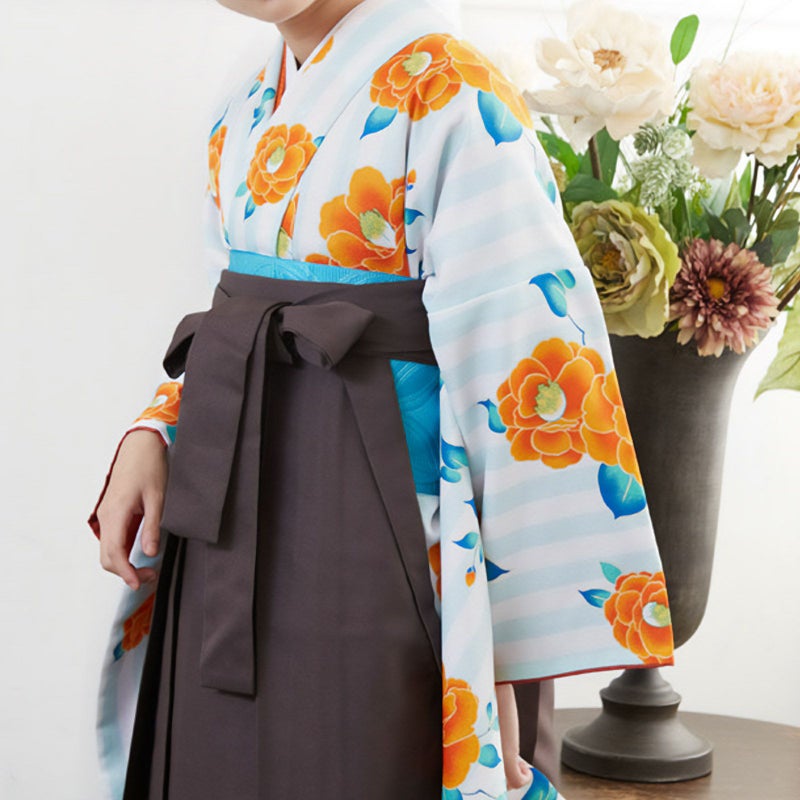 卒業式、謝恩会に 袴に合わせて華やかに 二尺袖 【中古品】二尺袖 単品「白×緑 縦縞 椿」貸衣装処分 レンタル処分品 卒業式 【メール便不可】ss2512kck10
