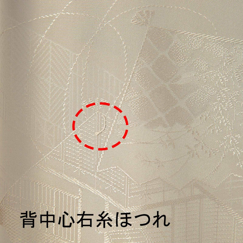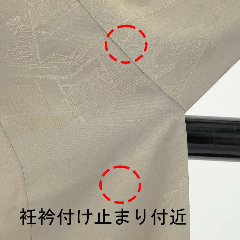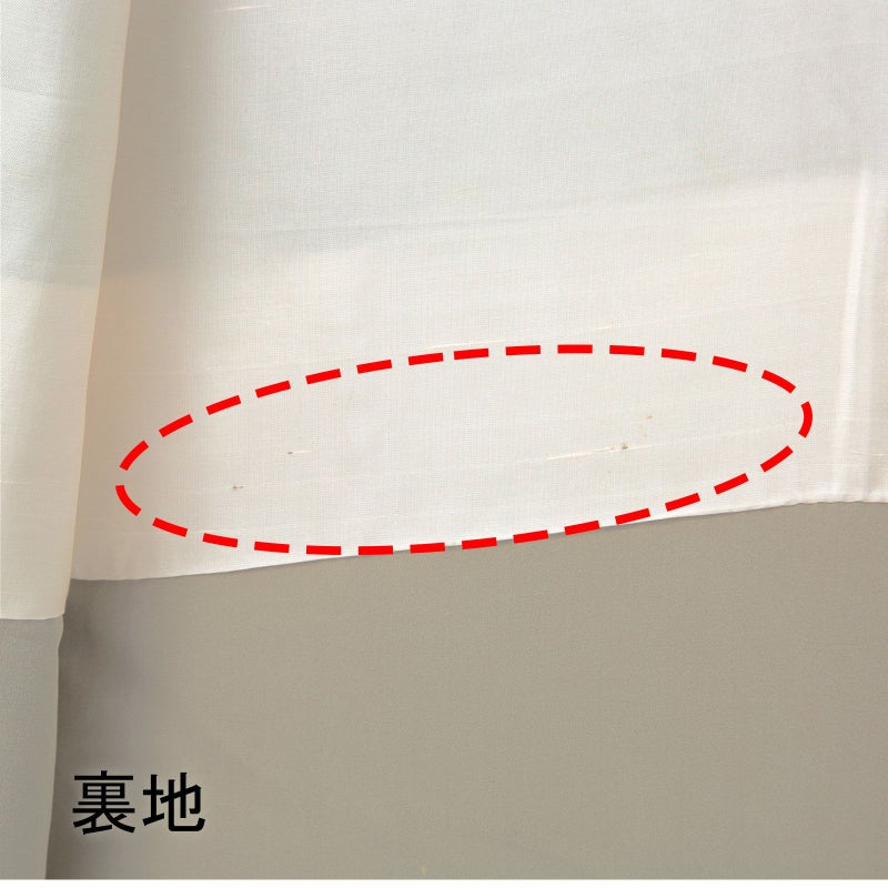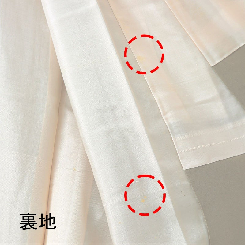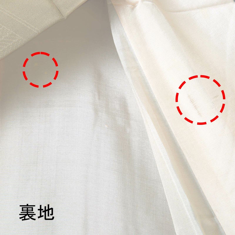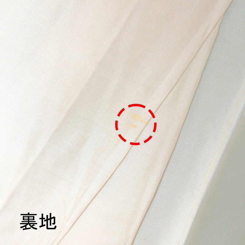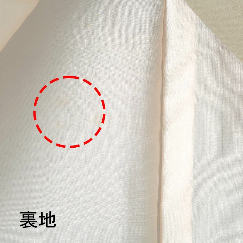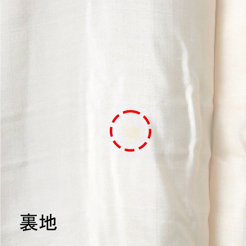 難:背中心左糸ほつれ、衽衿付け止まり付近汚れ、裏地汚れ・カビ、肩山汚れ