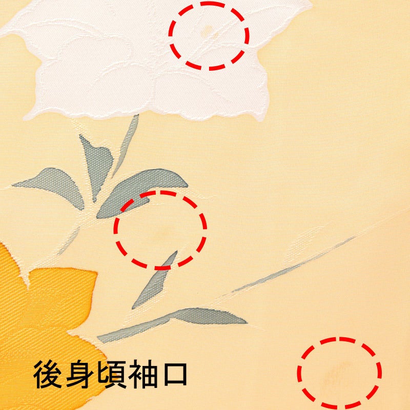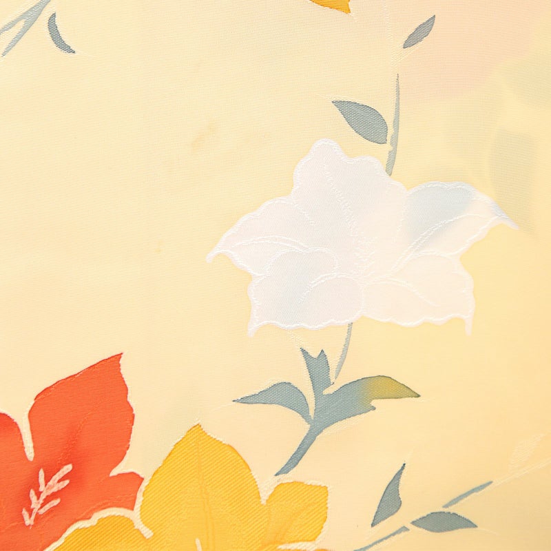 色味:薄橙地に朱色 柑子色 白の花