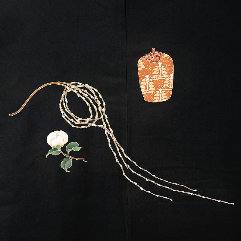 柄名:結び柳に茶道具