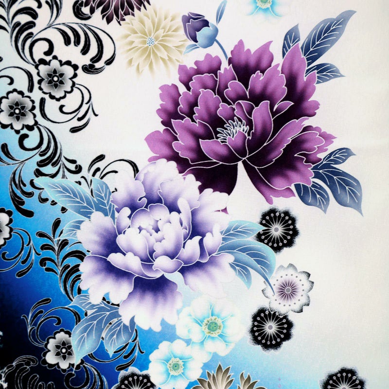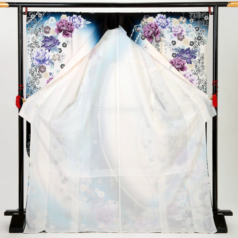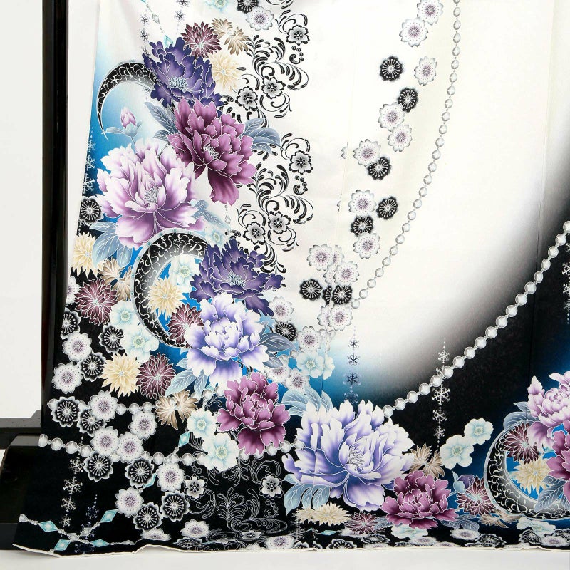 【色柄】雪の結晶 パール 花尽くし オフホワイト アズールブルーに黒