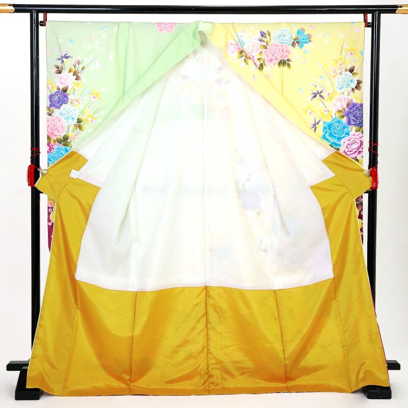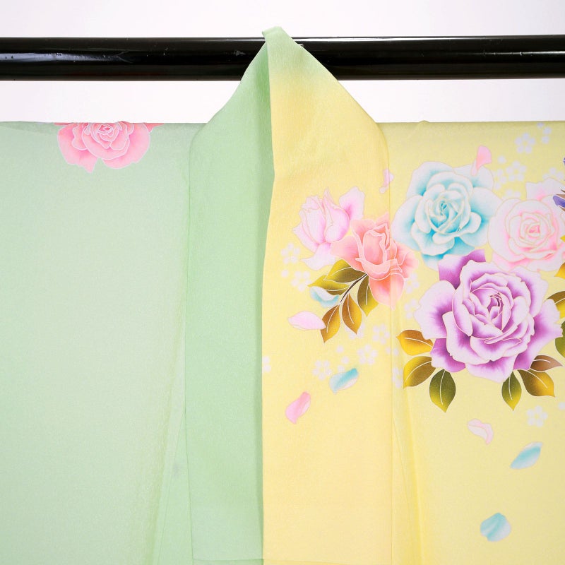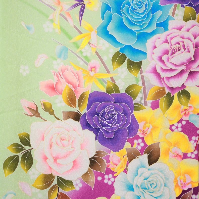 【色柄】薔薇 胡蝶蘭 薄緑ぼかし 淡黄蘗色