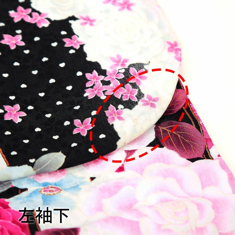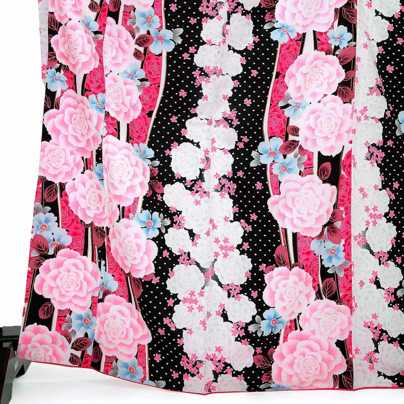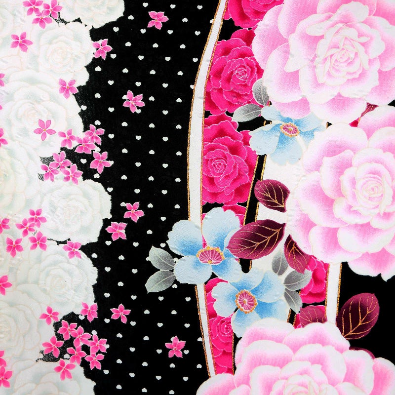 【色柄】流水にバラ ハート 黒