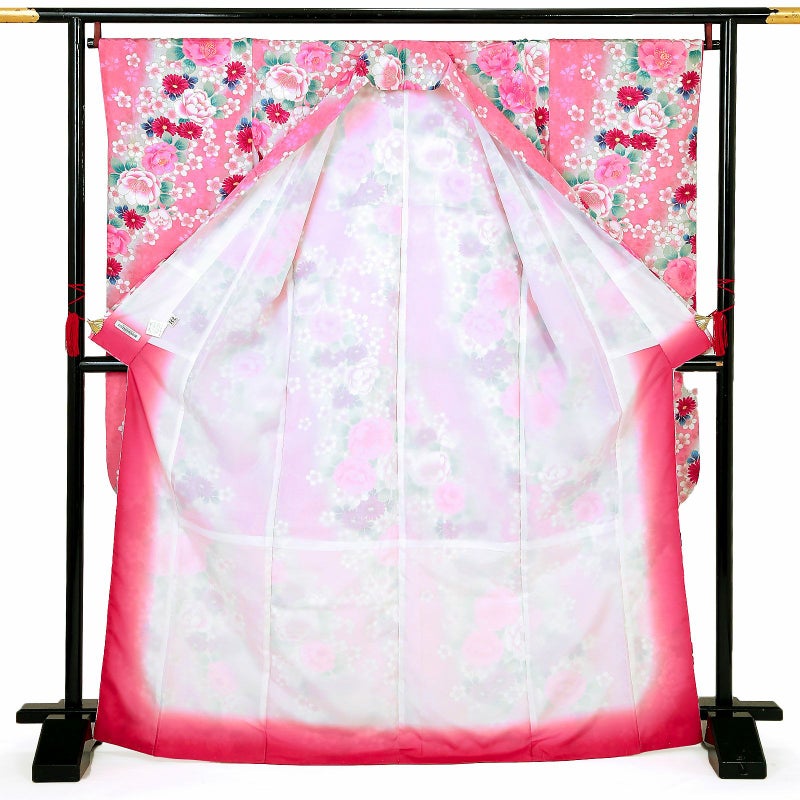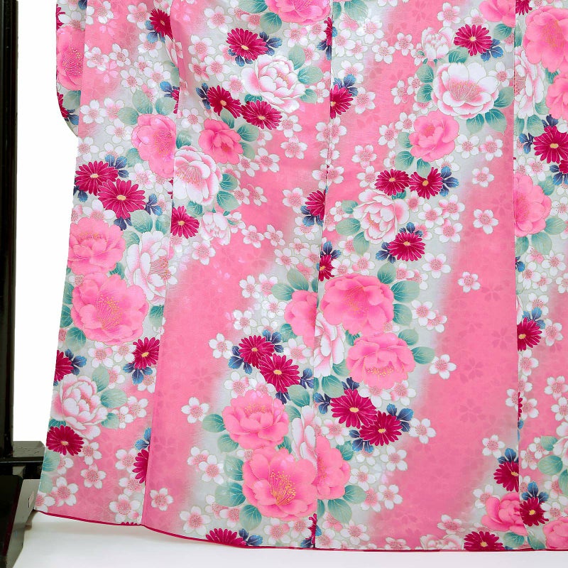 【色柄】桜地模様 椿 菊 桜 ピンク 薄緑ぼかし