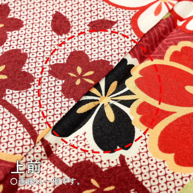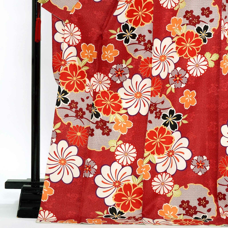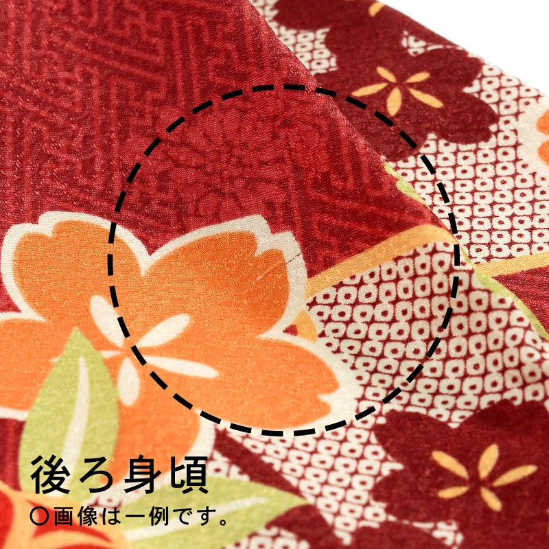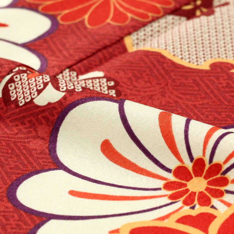 【色柄】雪輪 ねじり菊に桜 深緋色