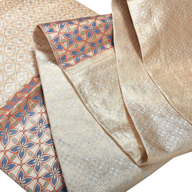 まばゆい金糸で織られた袋帯です。瑠璃色の花弁で織られた華燭とのコントラストからも意匠性の高さが伺えます。