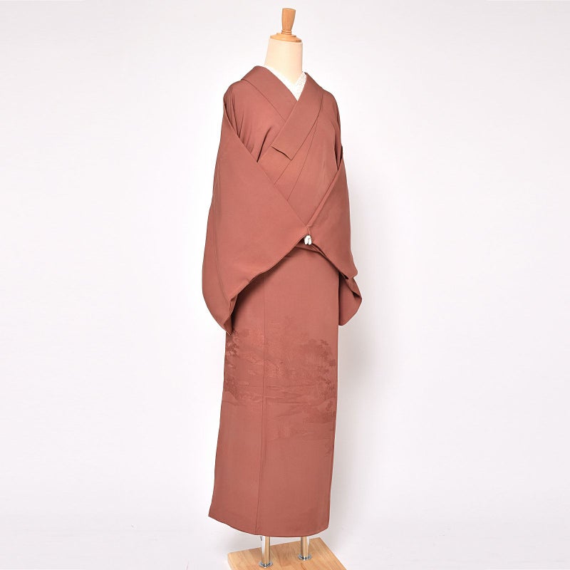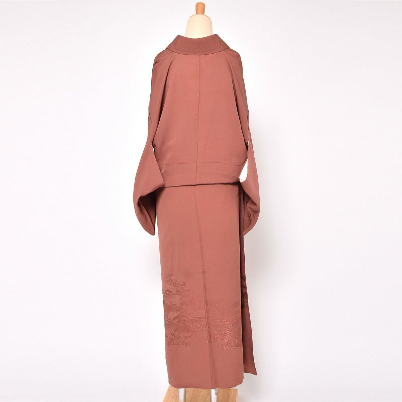 3. 【中古品】仕立て上がり 訪問着 袷着物 「茶色地に江戸解き織り文様」 正絹 【メール便不可】<T>