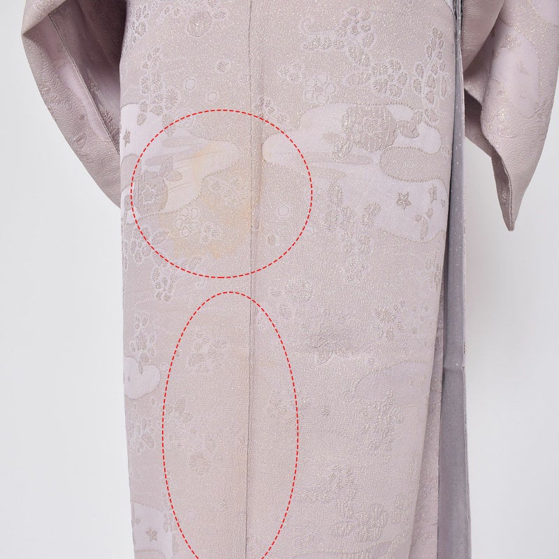 胸元、膝裏、足元部分に汚れが認められます。