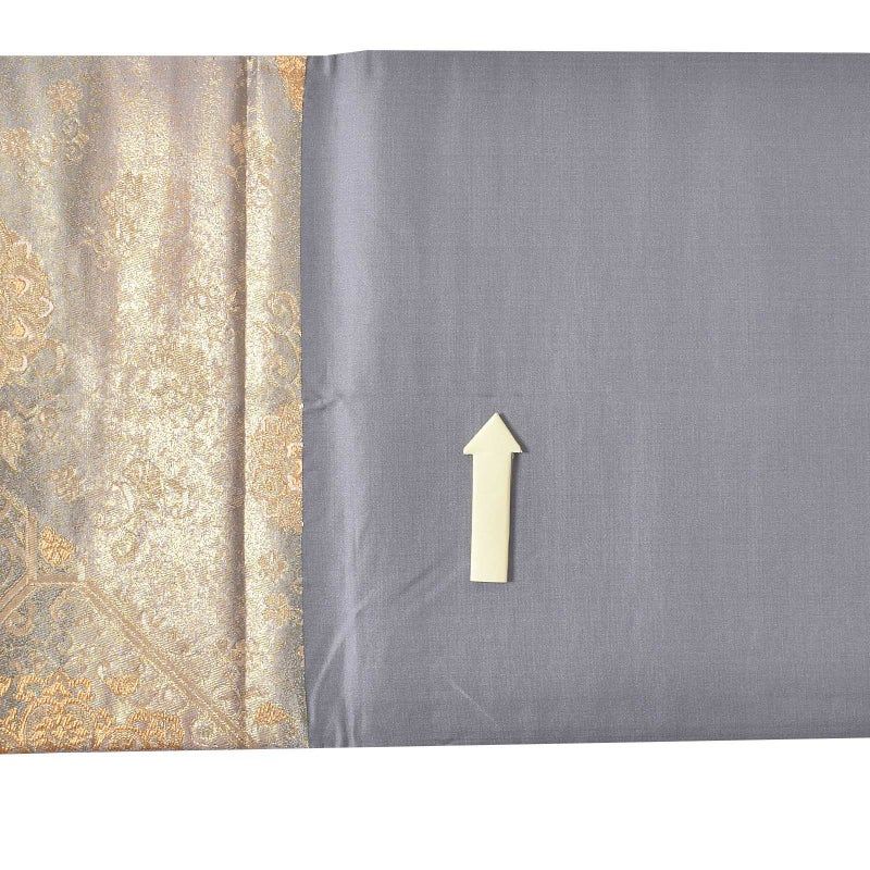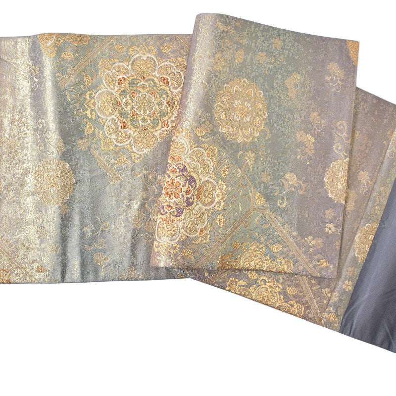 紫の地色に金糸をふんだんに織り込み、見る角度によって表情が豊かに変わる贅沢な逸品です。