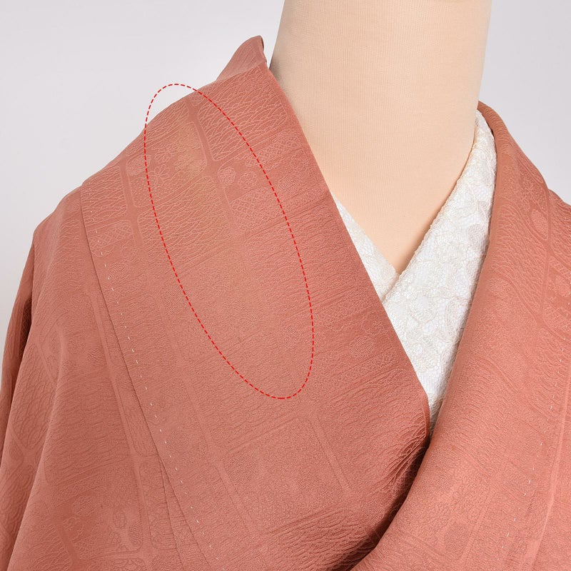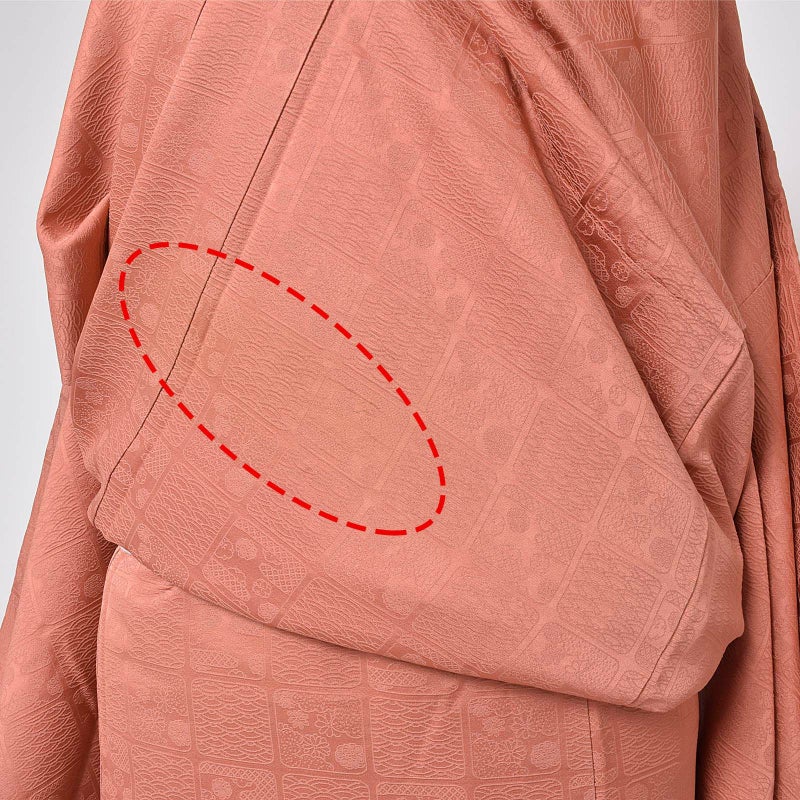 袖付きにほつれ、裾やぶれ、衿や上前裾他に汚れあり