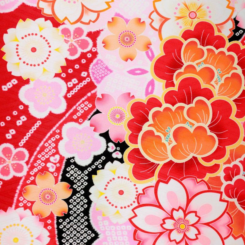 【色柄】流水に桜牡丹 赤