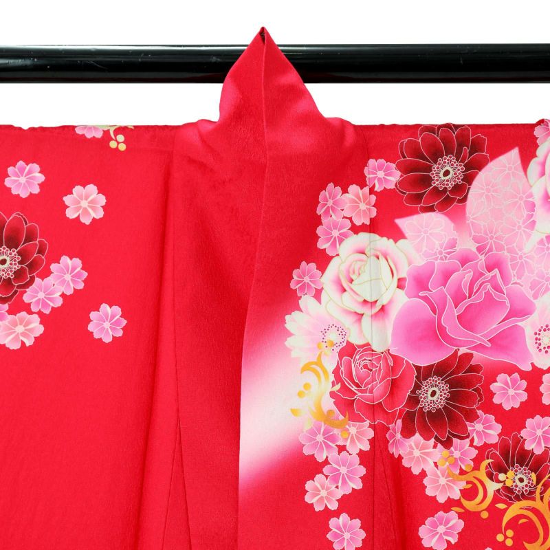 【色柄】バラに蝶 赤色地にピンクぼかし