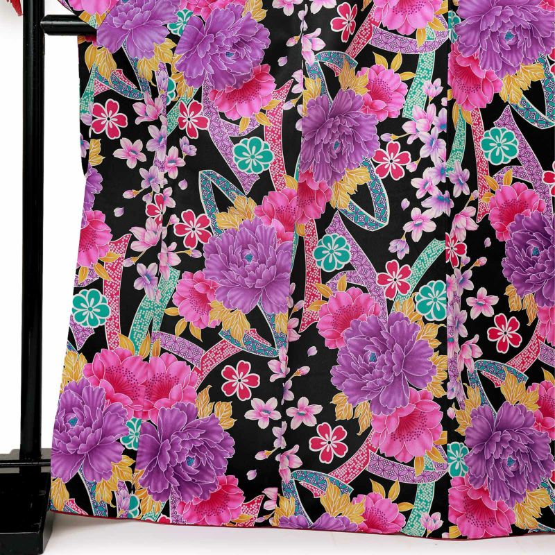 【色柄】熨斗に牡丹と桜 黒
