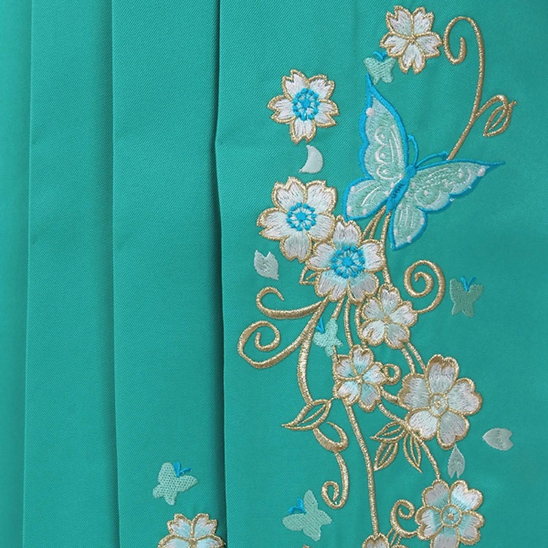 【色柄】ターコイズブルーにブルーの蝶と花の刺繍
