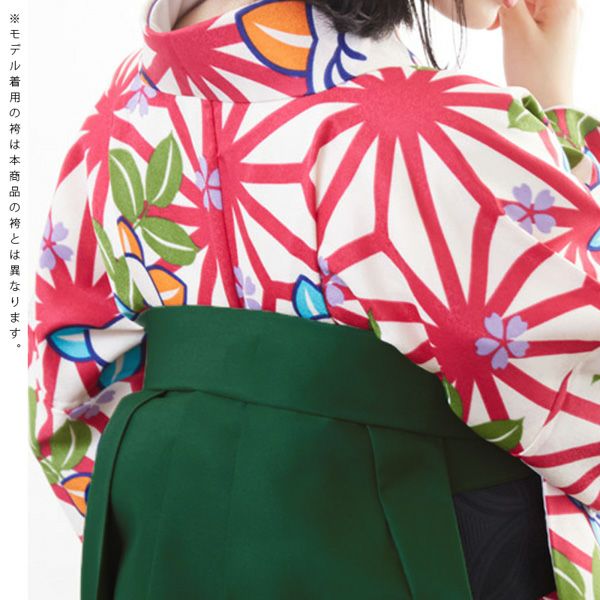 袴は緑地に桜の刺繍。(商品画像1枚目の袴とは異なります。)