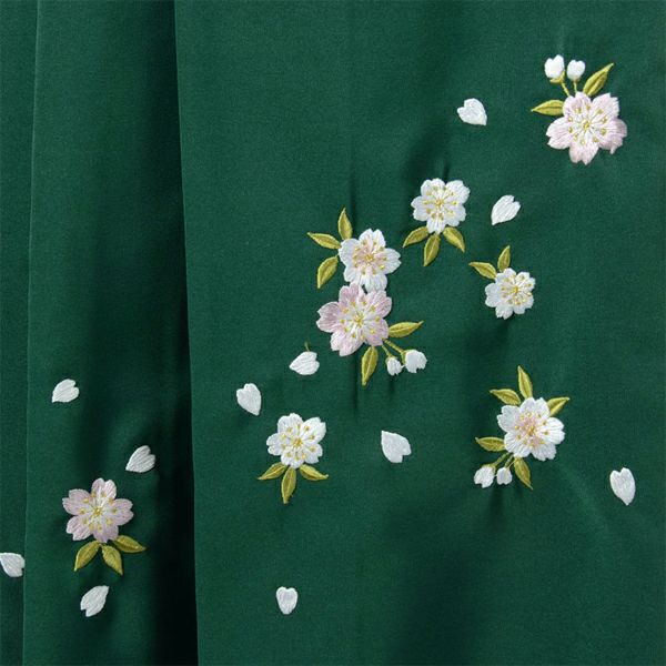 袴は緑地に桜の刺繍。(商品画像1枚目の袴とは異なります。)