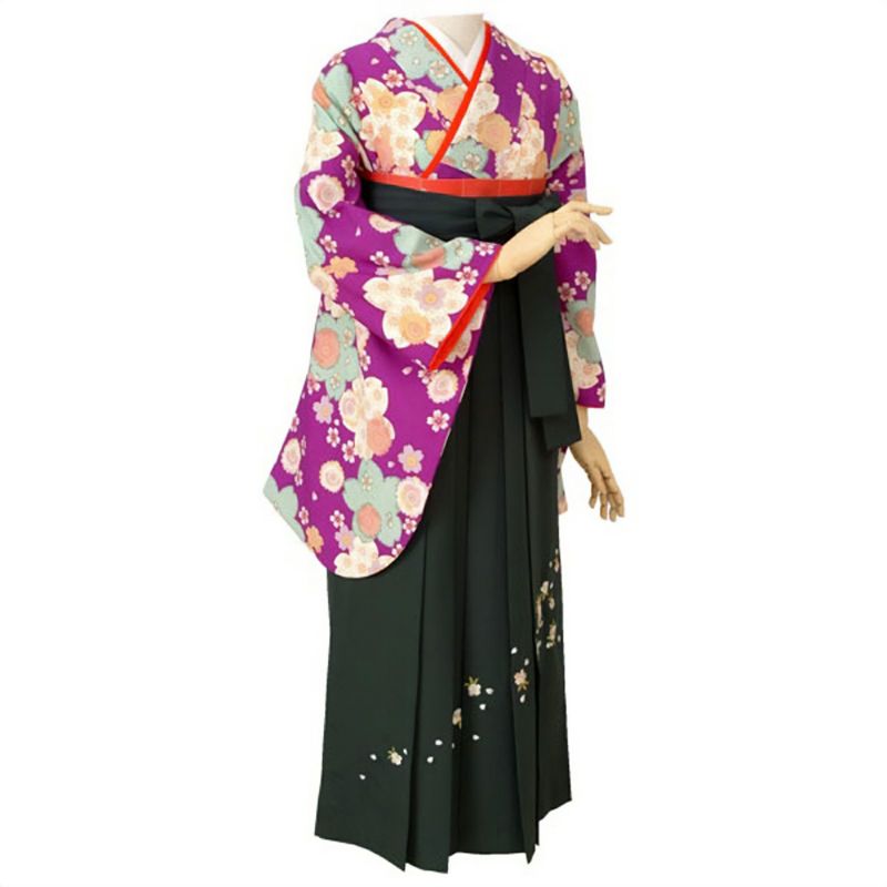 【色柄】鮮やかな紫地に、疋田や梅で彩られた愛らしい桜文や、様々なデザインの桜をちらしました。モダンレトロな趣の、桜づくしのお着物です。