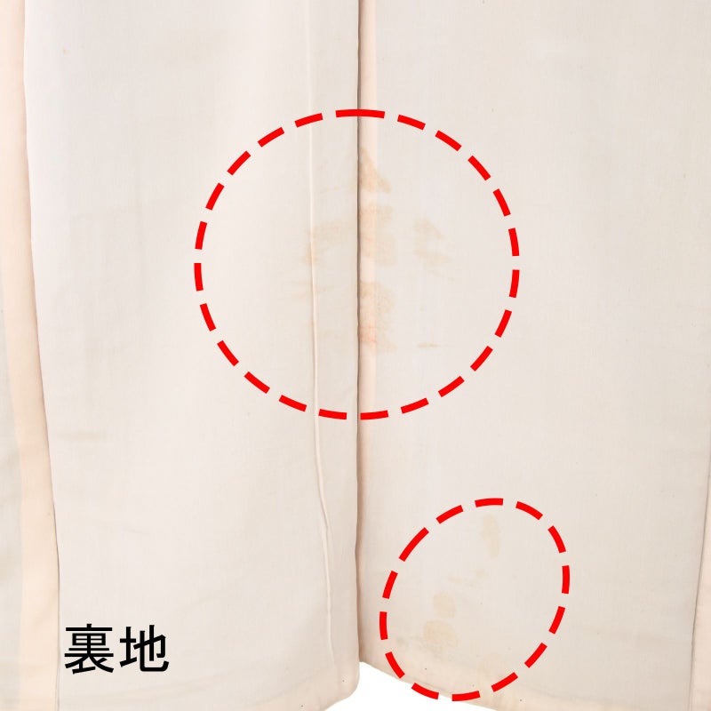 難:後身頃八掛汚れ、裾・?汚れ、裏地鉛筆汚れ、裏地シミ