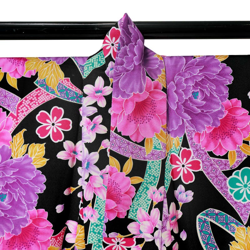 【色柄】熨斗に牡丹と桜 黒