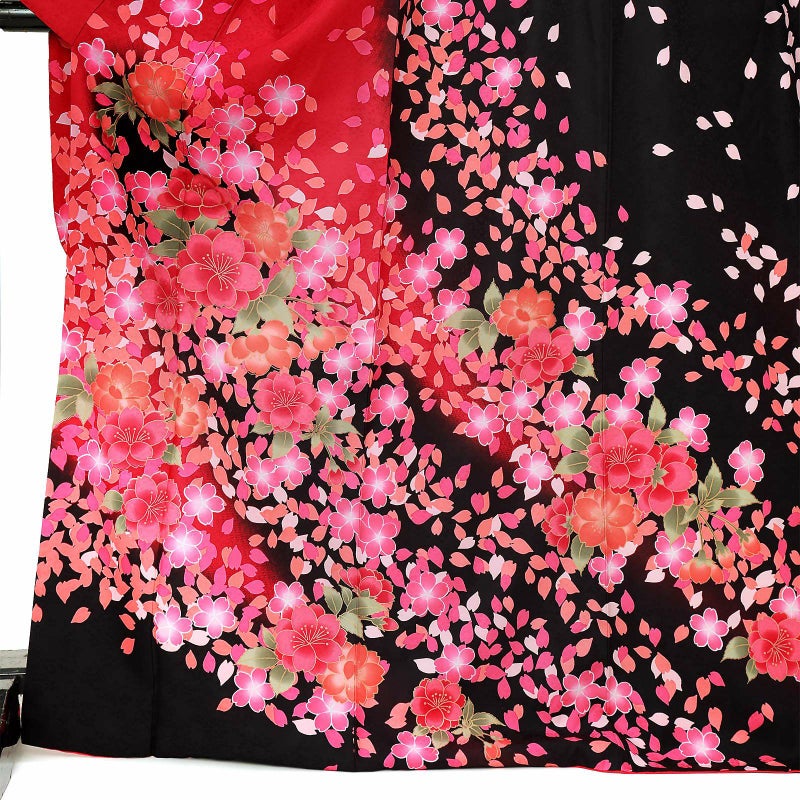 【色柄】小桜地模様 桜吹雪 黒 赤