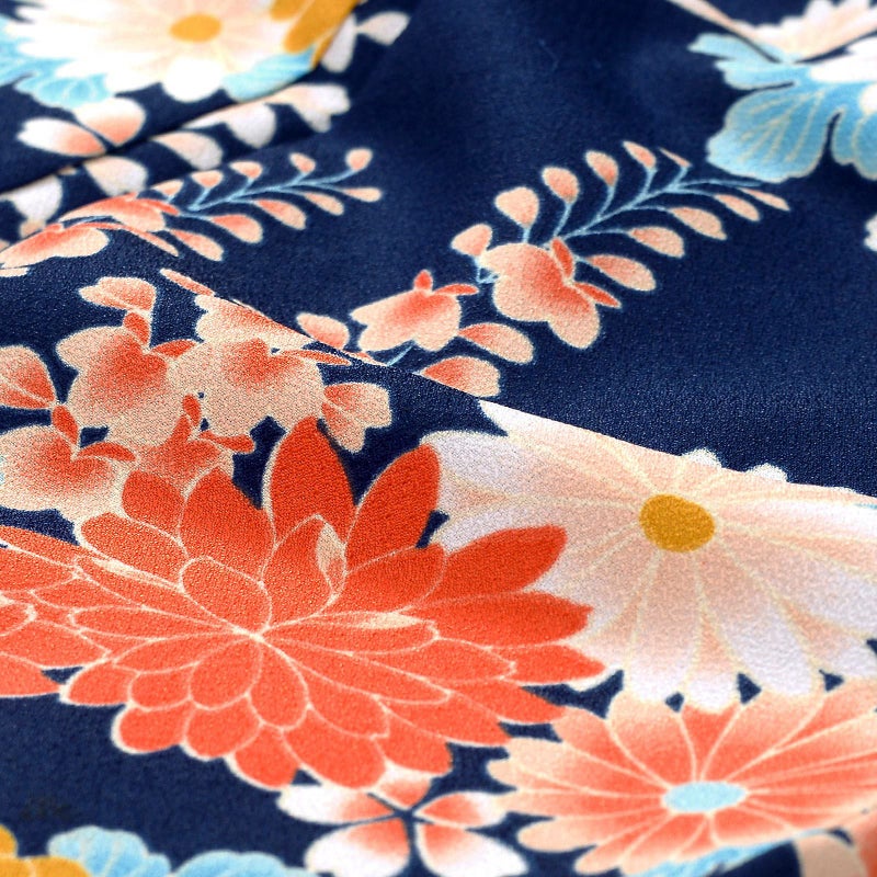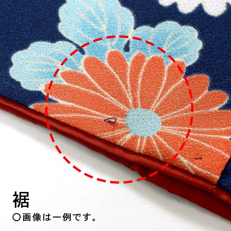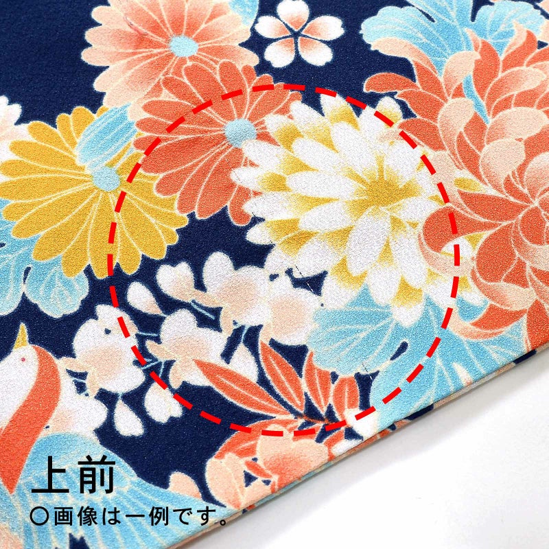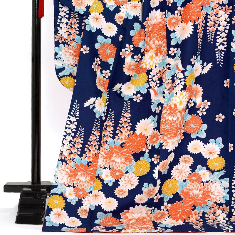 【色柄】菊に藤 鳥 紺色