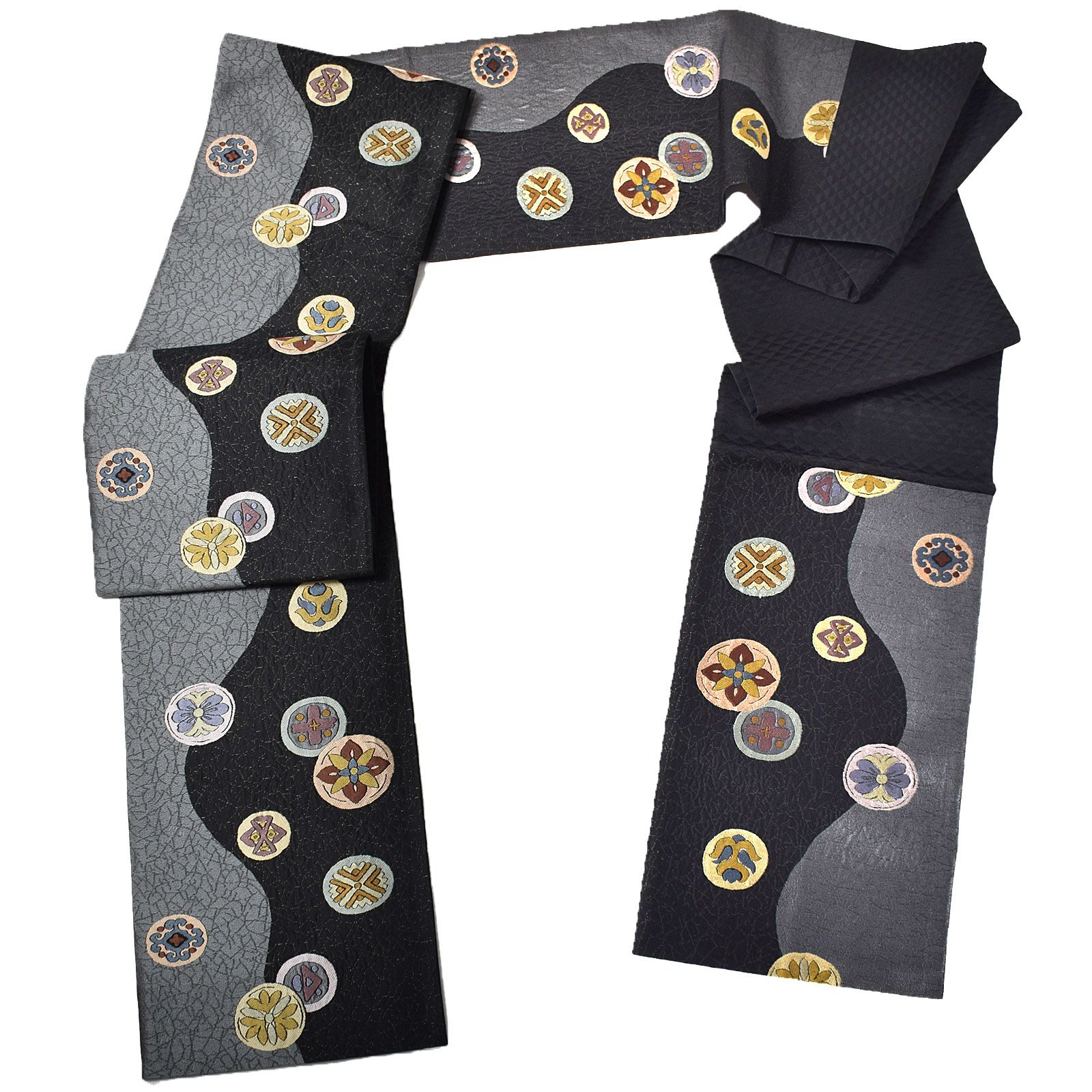 他の画像を見る 送料無料 店頭あり 中古品 お洒落な大人のおでかけに 【中古品】仕立て上がり 袋帯 「氷割れ文 紺とグレー地に抽象画の丸紋」 洒落帯 【メール便不可】 きもの町価格 ¥ 55,000 税込 在庫切れ 詳細を見る お気に入りに登録する