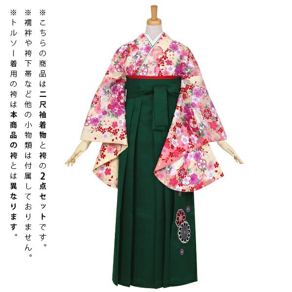 他の画像を見る 送料無料 中古品 卒業式、謝恩会に 袴に合わせて華やかに 二尺袖と袴のセット 【中古品】卒業式袴セット 「二尺袖:緑 疋田梅+袴:ピンク×桜 刺繍」 貸衣装処分 レンタル処分品 二尺袖 袴 卒業式、謝恩会に 【メール便不可】ss2512hkm10 きもの町価格 ¥ 11,500 税込 カートに入れる お気に入りに登録する