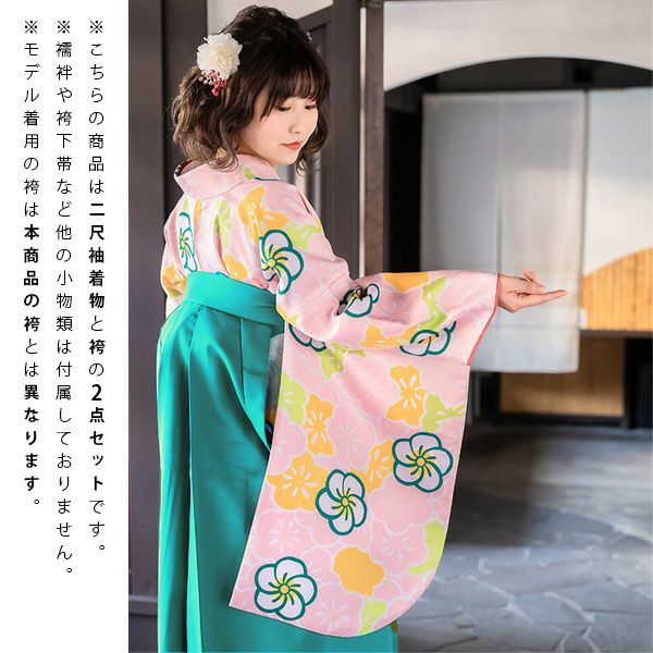 他の画像を見る 送料無料 中古品 卒業式、謝恩会に 袴に合わせて華やかに 二尺袖と袴のセット 【中古品】卒業式袴セット 「二尺袖:ピンク 梅尽くし+袴:ターコイズブルー×桜 刺繍」 貸衣装処分 レンタル処分品 二尺袖 袴 卒業式、謝恩会に 【メール便不可】ss2512hkm10 きもの町価格 ¥ 11,500 税込 カートに入れる お気に入りに登録する