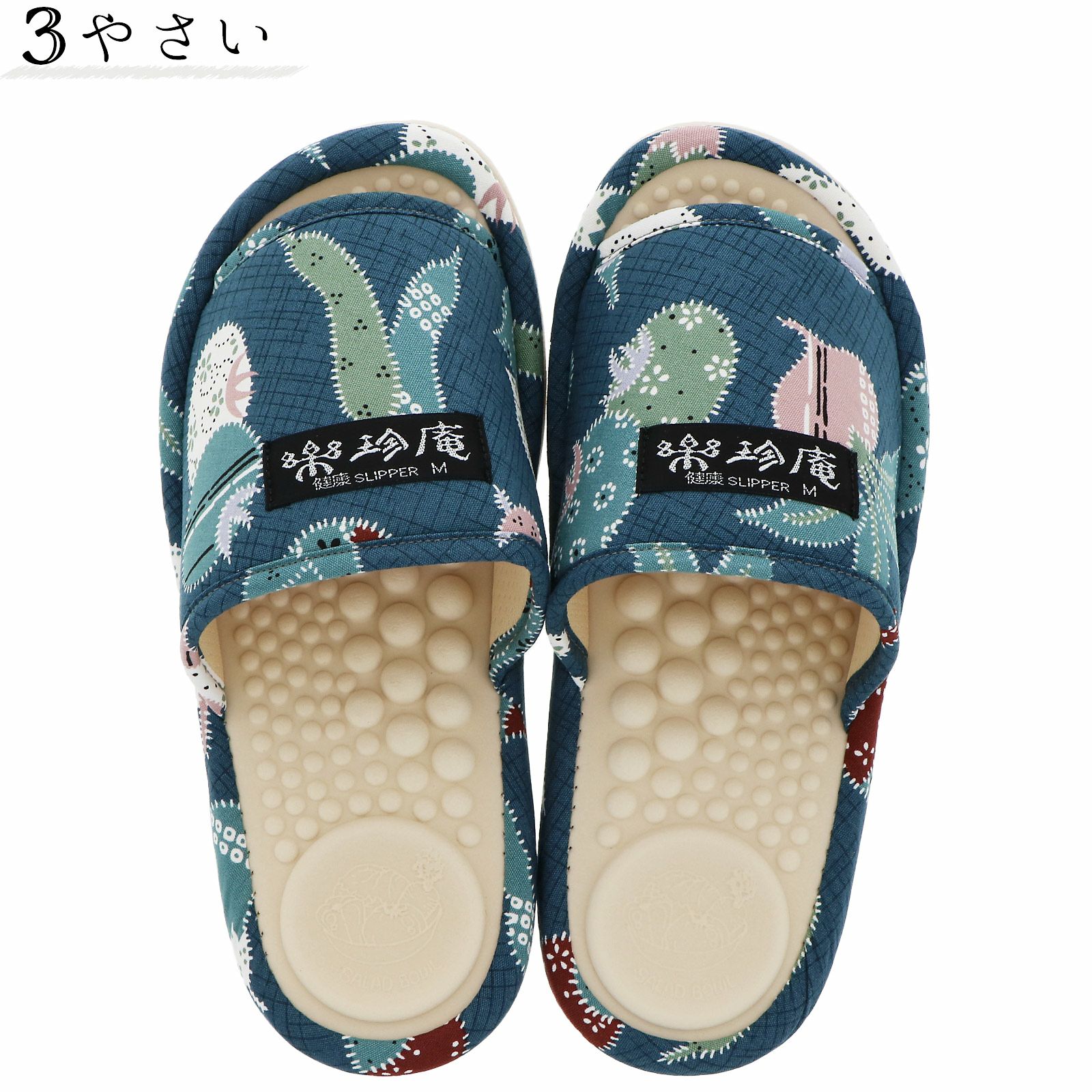 今まで健康スリッパは痛くて履けなかった人に好評をいただいている「サラダボールシリーズ」の和柄スリッパです。