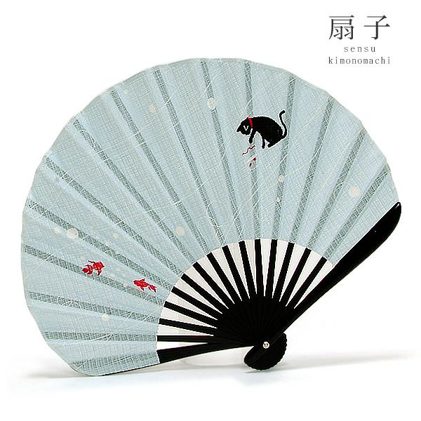 【Prices down】箱付扇子セット「水色 猫と金魚」扇子入れ付き 女性用扇子 (6632)【メール便不可】<H>ss2509wkm10