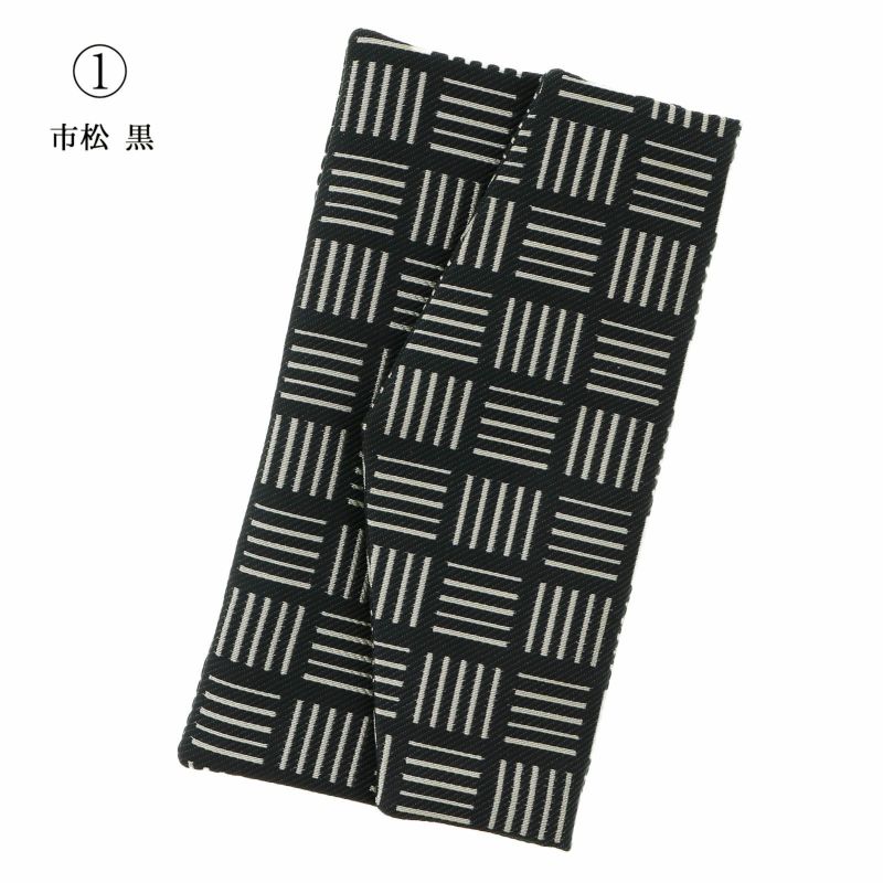 1.市松 黒…黒の綾織の地。銀糸の入ったベージュのラインが縦横に市松模様に配された模様。裏地は白の千鳥格子。
