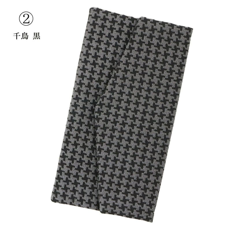 2.千鳥 黒…黒に鈍いグレーの千鳥格子の模様。ガンメタリックな光沢のある織りの生地です。裏地は白の大きめの千鳥格子。