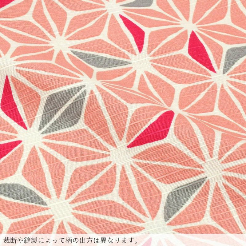 【カラー】生成り色に、落ち着いたコーラルピンクの麻の葉柄。紅、灰色の色合いがアクセントに。レトロモダンな雰囲気です。
