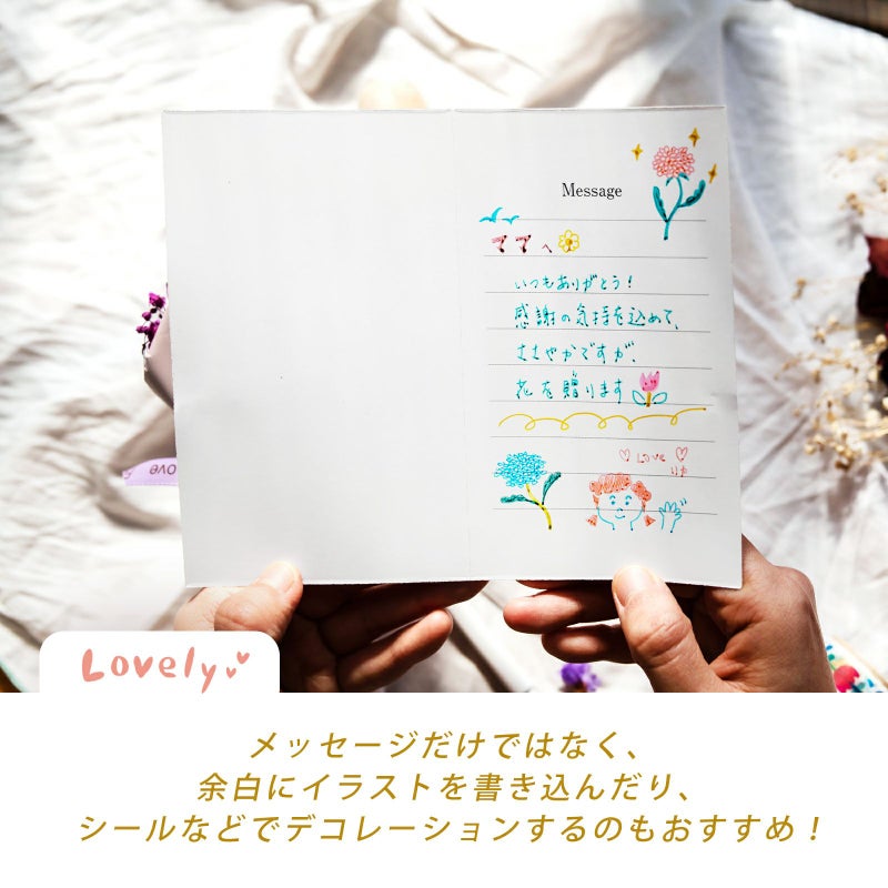 中のカードにメッセージを書いて、贈りたい相手にプレゼントしましょう!