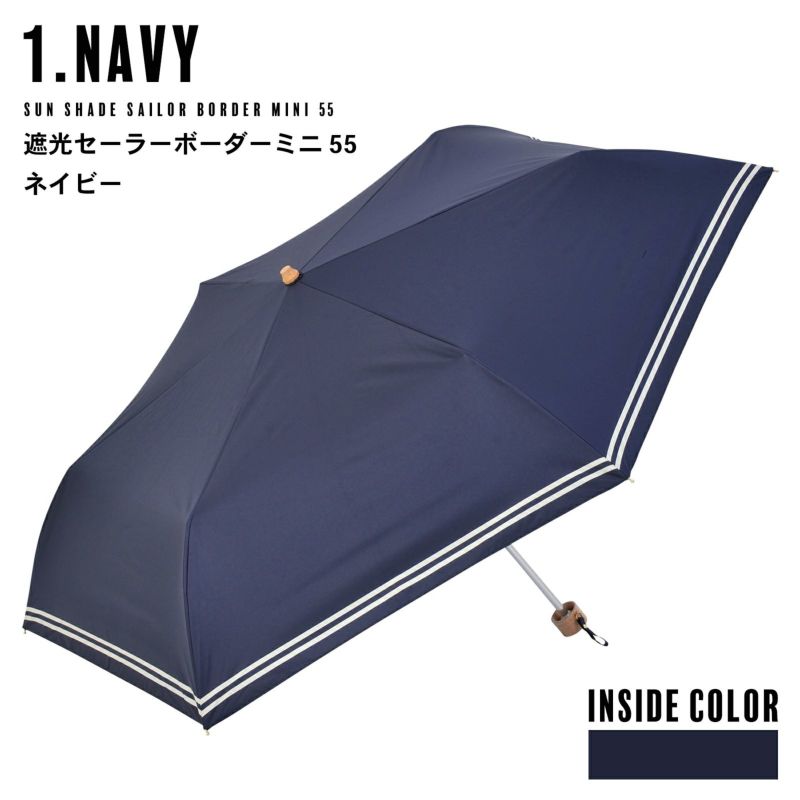 日傘 晴雨兼用「nifty colors 遮光セーラーボーダーミニ55 2364」遮光 遮熱 撥水 はっ水 防水 UVカット PU加工 折りたたみ 折傘 女性用 レディース women's プレゼント ギフト 母の日【メール便不可】