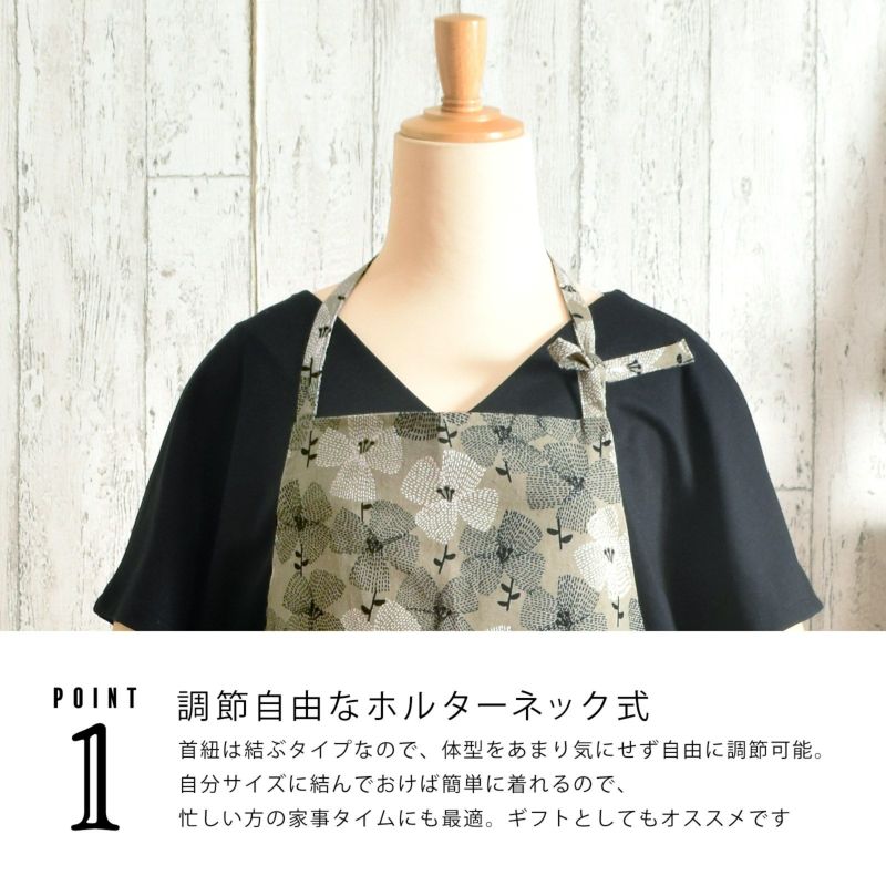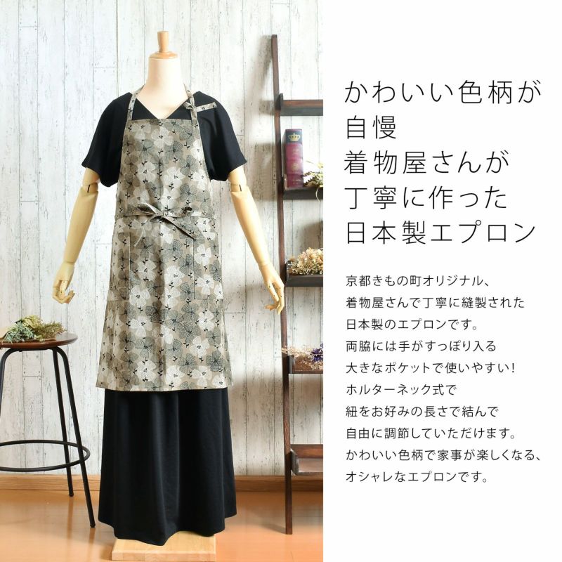 母の日や敬老の日のギフトにも!オシャレかわいいオリジナルエプロン エプロン「グレー テンセンフラワー」 実用的 日本製 オシャレ かわいい KIMONOMACHI オリジナル カフェエプロン 母の日 敬老の日 誕生日 プレゼント、ギフト、贈り物に最適<H> 【送料無料】【メール便対応可】ss2506wkm10