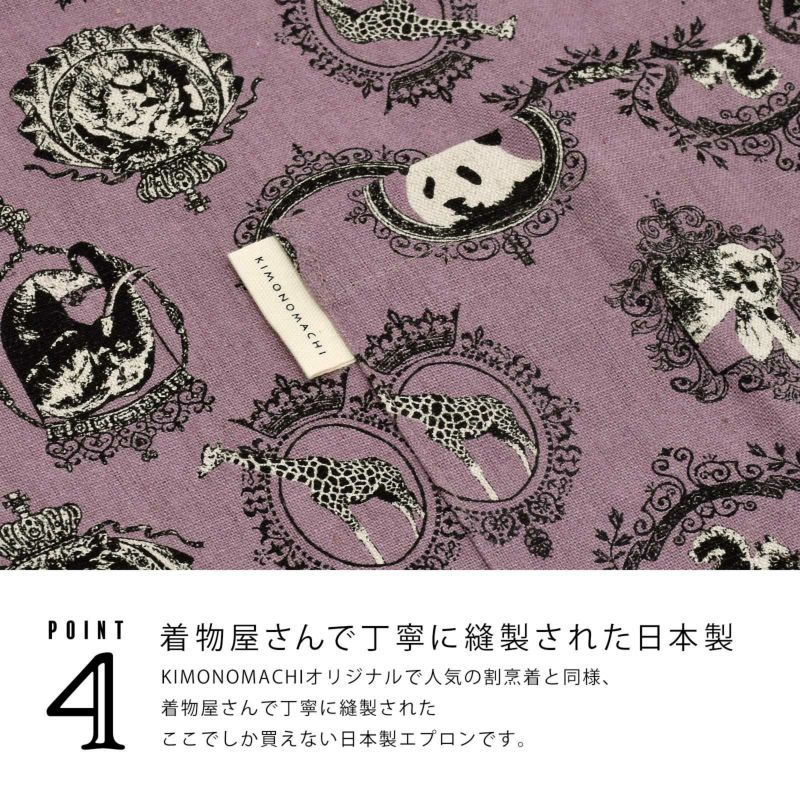 4. エプロン「パープル アニマルエンブレム」 実用的 日本製 オシャレ かわいい KIMONOMACHI オリジナル カフェエプロン 母の日 敬老の日 誕生日 プレゼント、ギフト、贈り物に最適<H> 【送料無料】【メール便対応可】ss2506wkm10