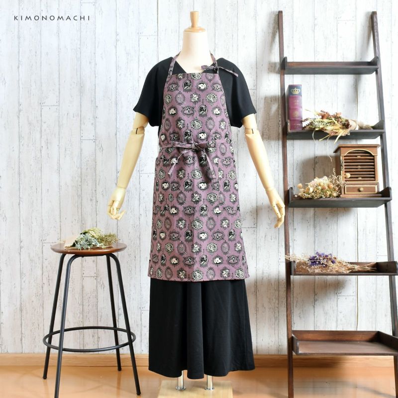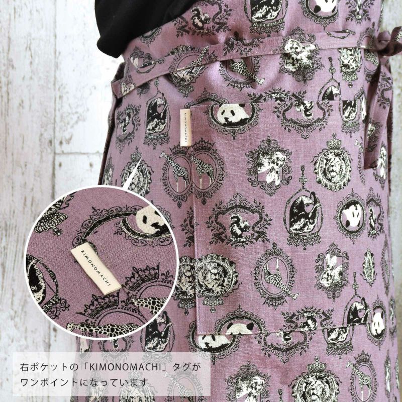 3. エプロン「パープル アニマルエンブレム」 実用的 日本製 オシャレ かわいい KIMONOMACHI オリジナル カフェエプロン 母の日 敬老の日 誕生日 プレゼント、ギフト、贈り物に最適<H> 【送料無料】【メール便対応可】ss2506wkm10