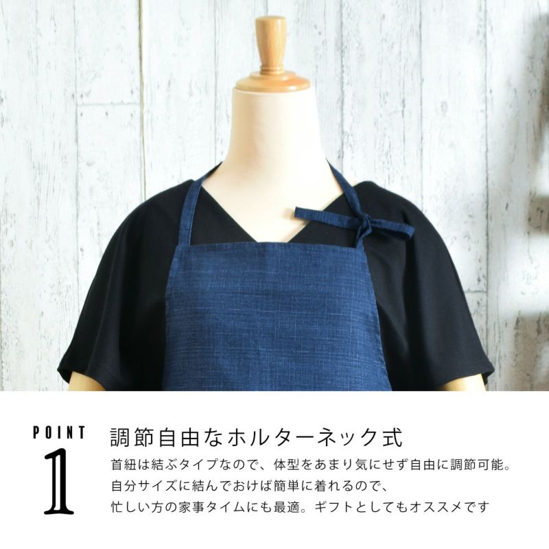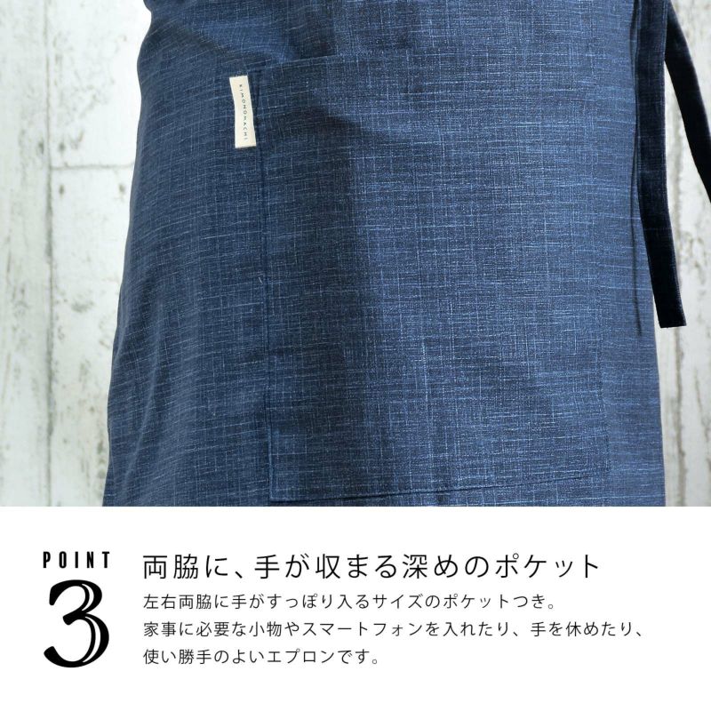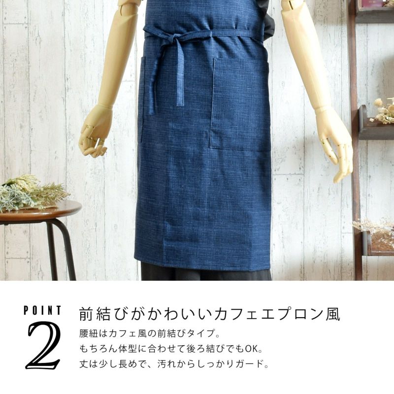 3. エプロン「濃藍 紬調」 実用的 日本製 オシャレ かわいい KIMONOMACHI オリジナル カフェエプロン 母の日 敬老の日 誕生日 プレゼント、ギフト、贈り物に最適<H> 【送料無料】【メール便対応可】ss2503wkm10