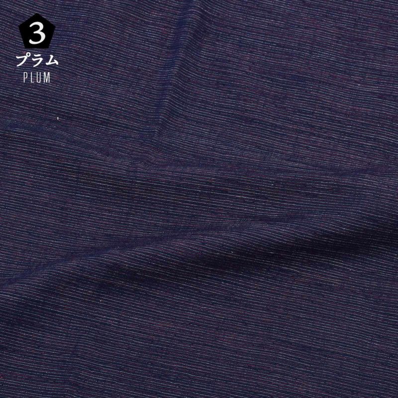 3.プラム…紺、赤、白が細かく混ざった紫色系の横畝のある生地。