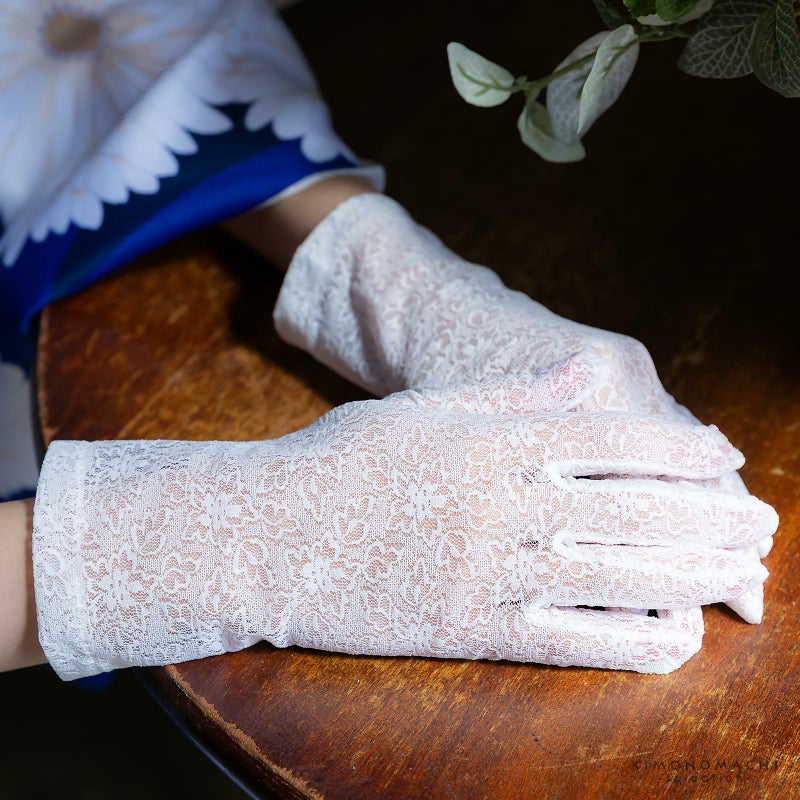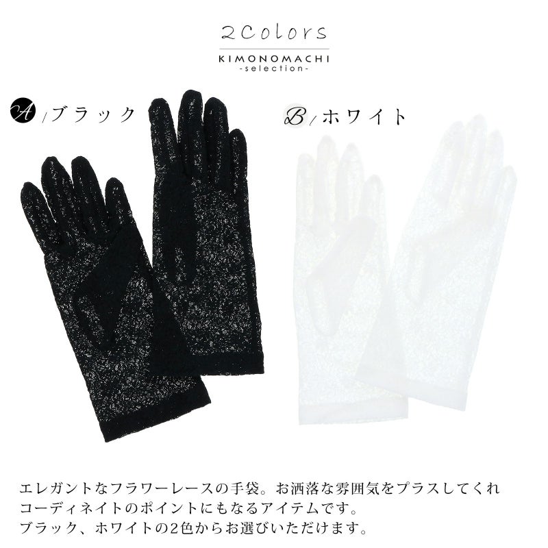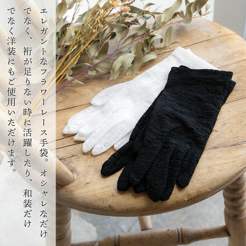 レース手袋 レディース 手袋 単品「ブラック・ホワイト」フリーサイズ 21.0cm~22.0cm フラワーレース 女性 洒落小物 和装小物 着物 和装 洋装 和洋兼用 ウエディング ブライダル アクセサリー 披露宴 パーティー グローブ 和洋折衷【メール便対応可】