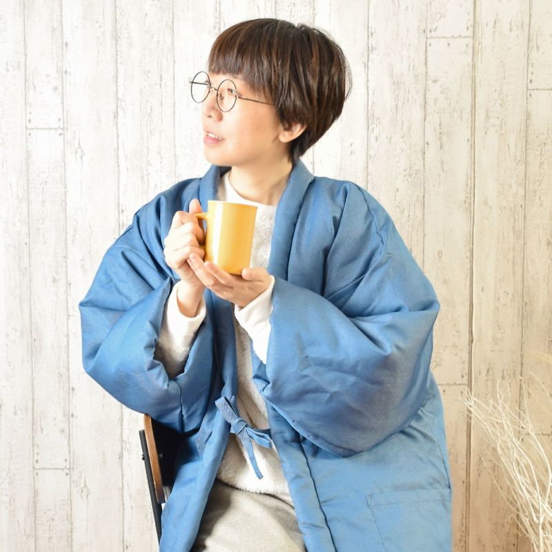 柔らかいデニム調のツイル生地を使用したふわふわあったか半纏です。