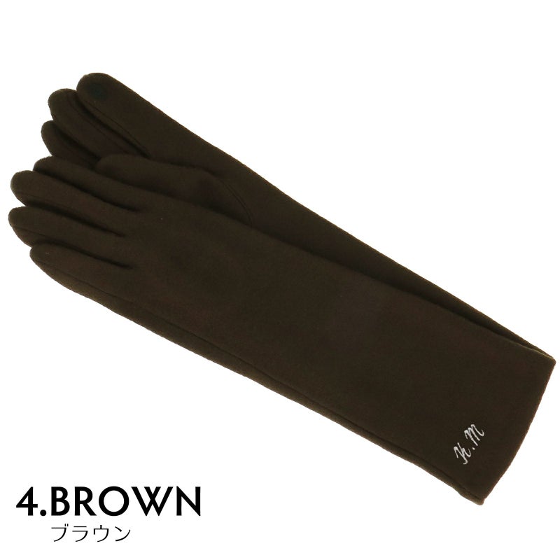 4.ブラウン…深いこげ茶色のやわらかなアクリル生地。親指と人差し指の指先に、地の色と同系色のタッチパネル対応刺繍。