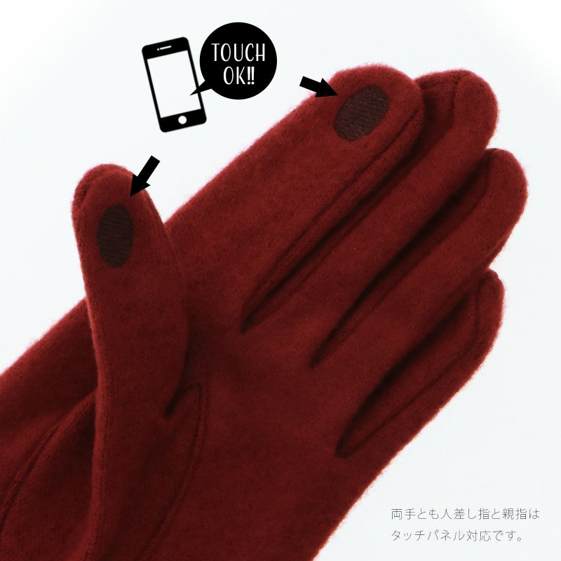 人差し指と親指はタッチパネル対応で、手袋をしたままスマートフォンの操作も可能。ふわふわで柔らかいアクリル100%、ウールなどの毛を含まず、ちくちくしません。
