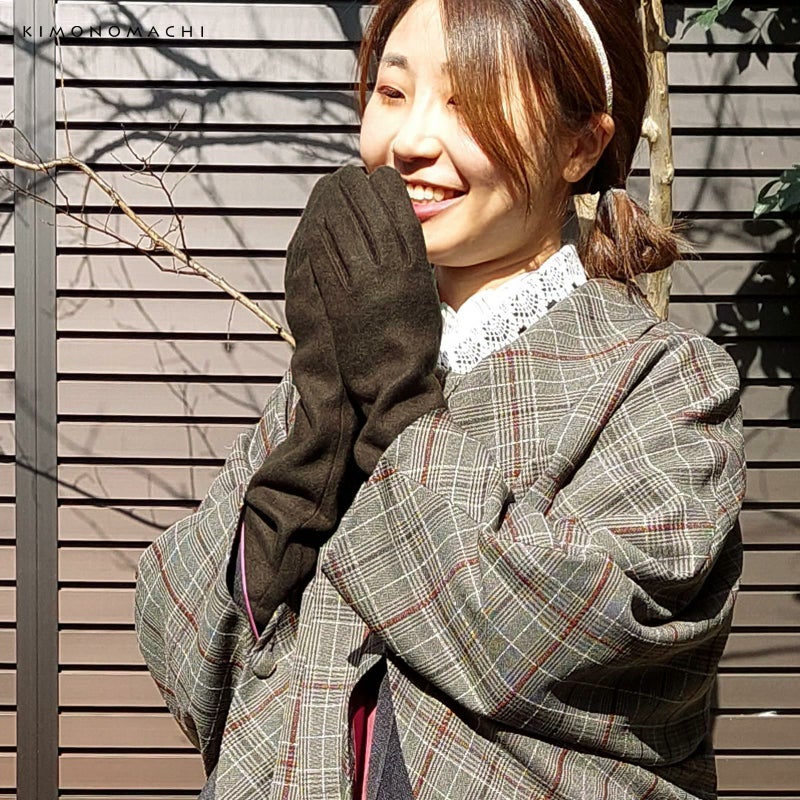 手さわりふんわりポカポカあったか袖口から風が入って、寒くなりがちな着物にぴったりの約38cmロング手袋です。