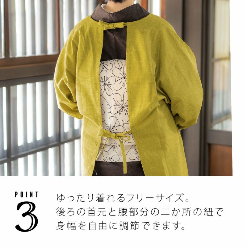 家事や料理など作業時の汚れ防止に、着物だけでなく普段着の洋服にも合わせていただけます。