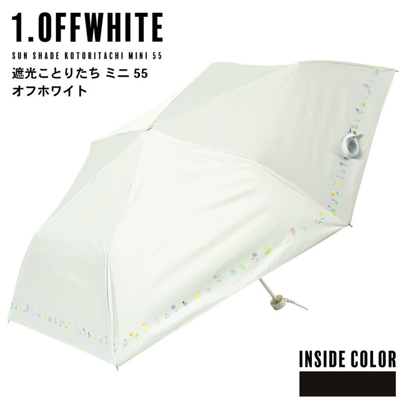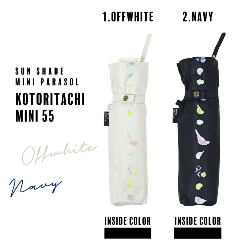 日傘 晴雨兼用「nifty colors 遮光ことりたちミニ55 オフホワイト・ネイビー 2468」遮光 遮熱 撥水 はっ水 防水 UVカット PU加工 折りたたみ 折傘 女性用 レディース women's プレゼント ギフト 母の日【メール便不可】